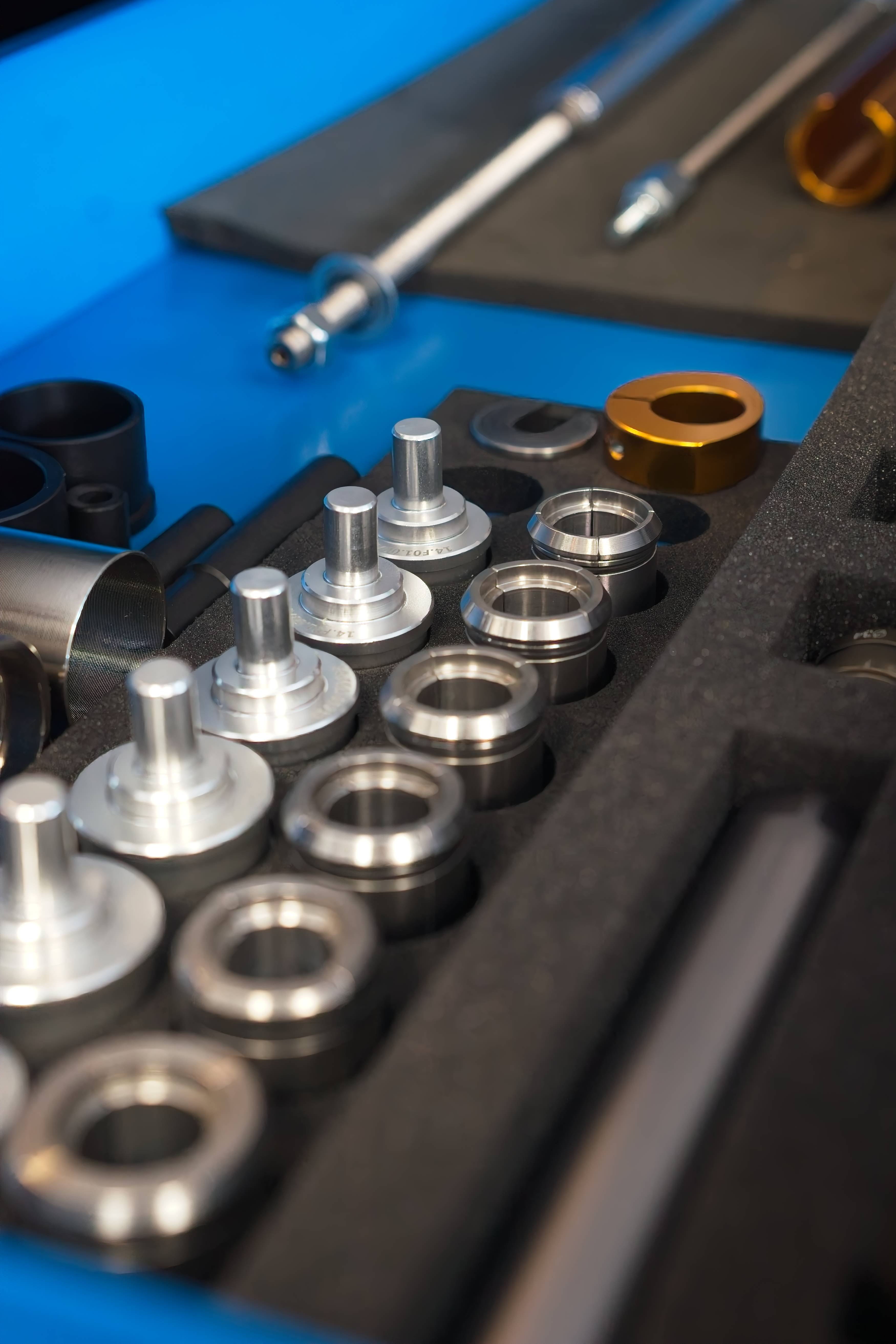 Ausgeschlagene oder verklemmte Buchsen können das Ansprechverhalten deines Fahrwerks deutlich verschlechtern. Beim Buchsenwechsel ersetzen wir verschlissene Lager- oder DU-Buchsen durch hochwertige, passgenaue Komponenten. Anschließend wird alles präzise ausgerichtet und justiert, um ein spielfreies, sensibles Ein- und Ausfedern sicherzustellen.So läuft deine Federung wieder geschmeidig, reduziert Reibung und überträgt jede Bewegung sauber – für mehr Kontrolle, Komfort und Langlebigkeit auf dem Trail.